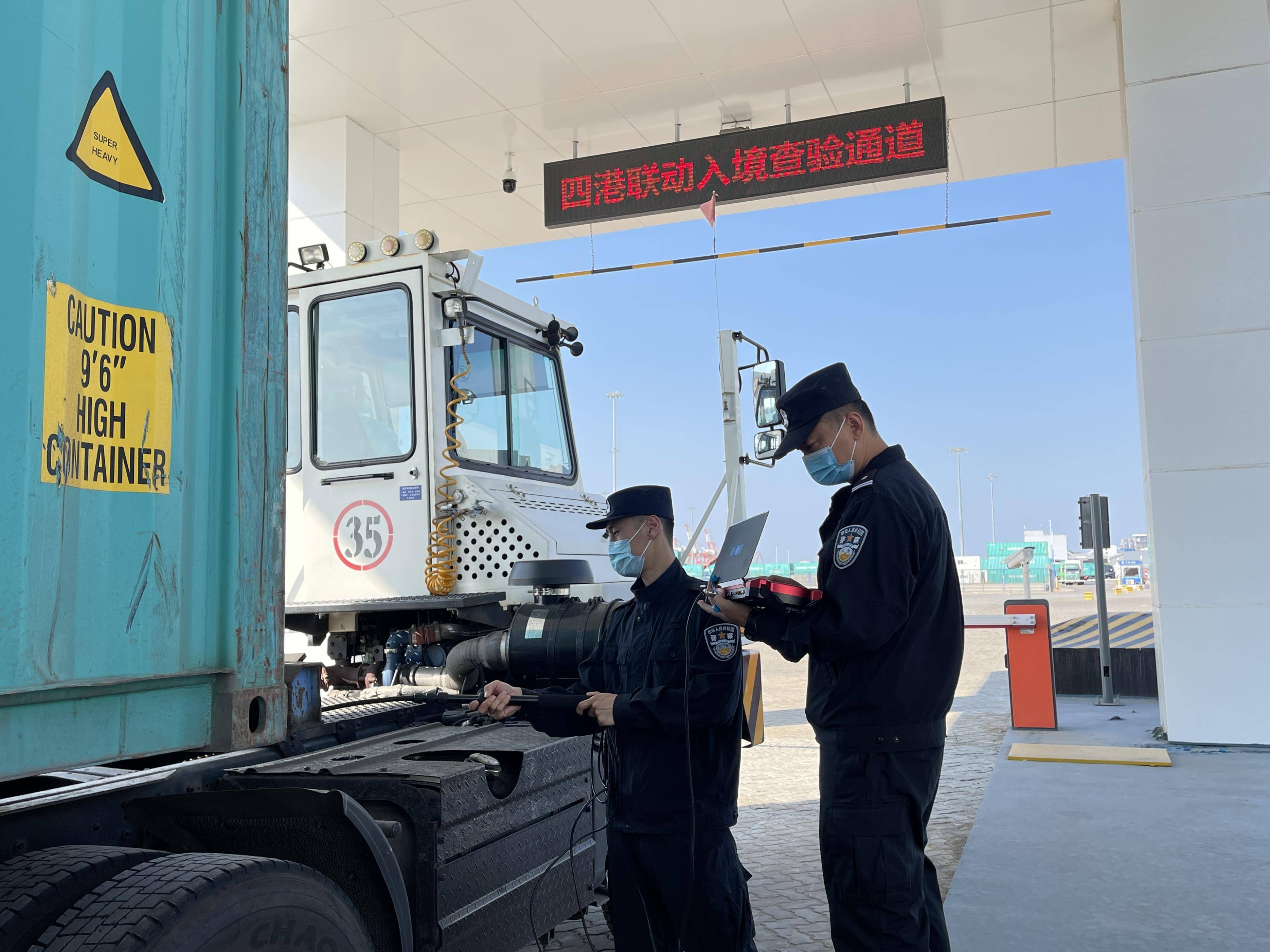 上半年,随着威海港区内中韩陆海联运“四港联动”车辆查验专用场地建设完工,查验技术难题也得到了攻克。在国家移民管理局特批增设“四港联动”整车运输查验模块的支持下,该站探索试行“合作查验、一次放行”车辆一站式通关模式,形成一套集通关政策支持、查验技术保障、场地设施建设为一体的新型出入境项目边检服务保障体系,得到了驻地政府和口岸企业的高度评价。