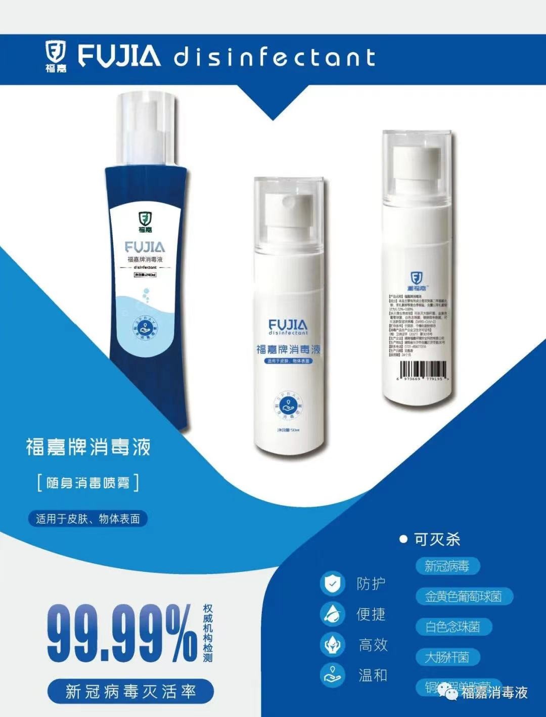 国内首款杀灭新冠病毒的消毒液上市了,1分钟可灭杀新冠病毒!自新冠出现以来,湖南福嘉自主投资研发并生产了福嘉牌消毒液,是国内首款获得国家卫健委批文,可杀灭新冠病毒的消毒液。