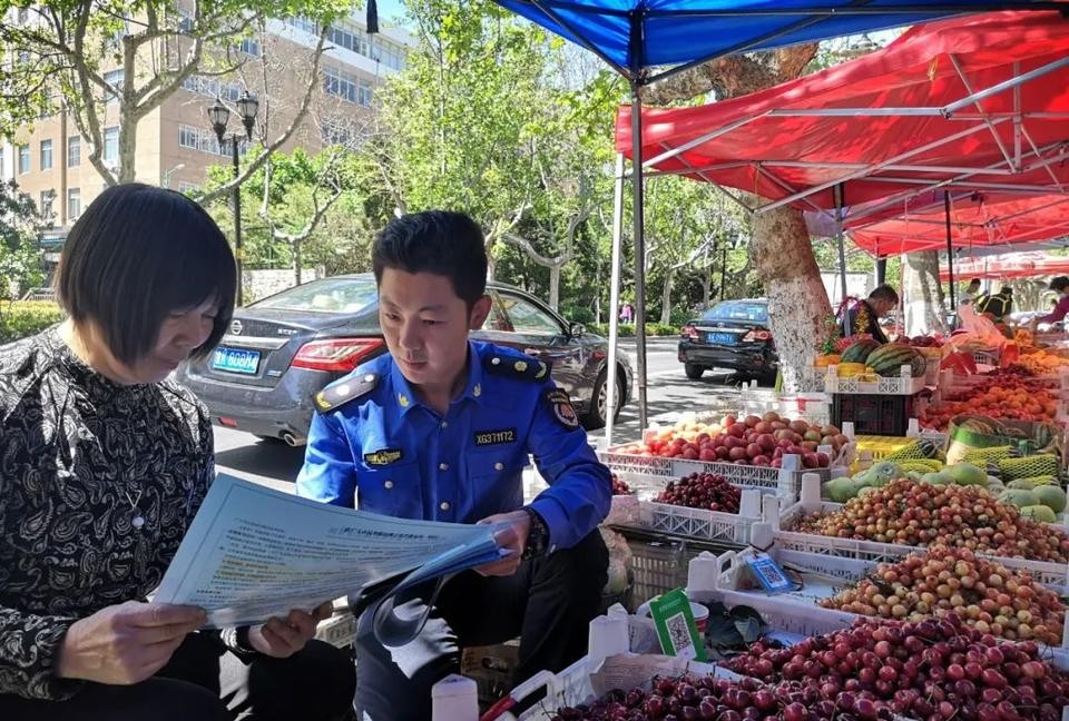 “咱们把收付款音响声音调小一点儿,因为离居民楼太近了,咱自己能听见就行,别太大声。”清晨的古陌早市,菜绿、果香、鱼鲜,在闲适地逛着早市的人群之中,一群身着深蓝色制服的工作人员格外显眼。走到每个摊位前,鲸园街道执法中队工作人员都要叮嘱一下摊主。