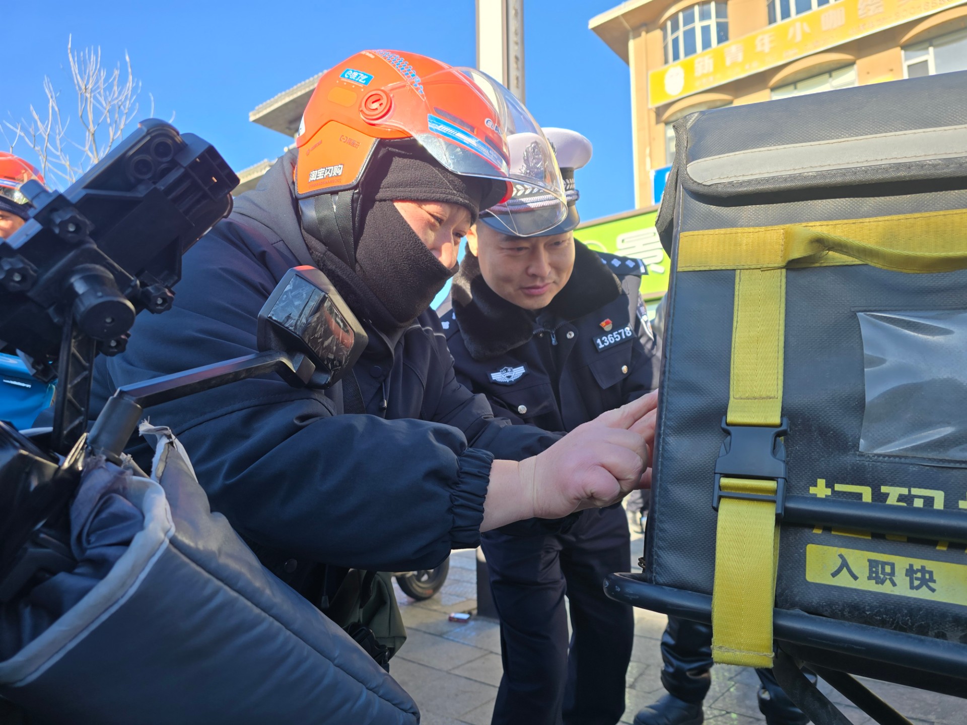 1月5日,威海交警临港区大队聚焦快递员、外卖配送员出行防护需求,深入美团外卖站点、苘山镇美食步行街开展“亮尾行动”,通过免费粘贴反光标识、强化安全宣传等举措,为骑手出行筑牢“安全屏障”。